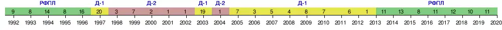 | 1992 | Высшая лига России, 9-20 места | 30 | 14 | 8 | 8 | 50-36 | 36 | ||