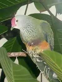 | Северные Марианские острова | Марианский пёстрый голубь, англ. Mariana Fruit-dove (род Пёстрые голуби) | Ptilinopus roseicapilla | ![]() | . |