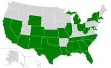 Тёмно-зелёным выделены штаты, у которых рептилии являются официальными символами