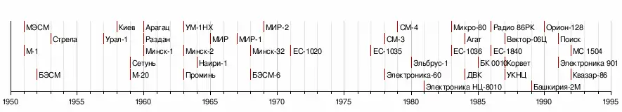 График начала выпуска или эксплуатации советских компьютеров: