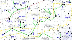 | 10 | Her | CRT | Чаша | 282,398 | 0,68 % | 11ч 23,75м | −15° 55,74′ | SQ2 |