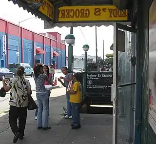 Одни и те же названия улиц встречаются в разных боро Нью-Йорка; кроме того, на одной и той же улице может быть несколько станций метро, относящихся к разным линиям. По этой причине названия станций повторяются (аналогично двум «Арбатским» или двум «Смоленским» в Москве). Для различения станций-тёзок как правило добавляют к названиям обозначения маршрутов, останавливающихся на них, причём по традиции это делается для всех станций, даже для тех, у которых тёзок нет. Использование маршрутов для этой цели неудобно, потому что маршруты меняются со временем. Другой способ различения станций-тёзок — добавление названий линий. Именно он использован в Википедии.