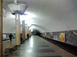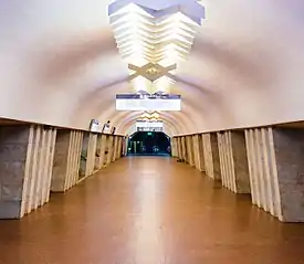 Тип — колонная. Предыдущее название «Метростроителей имени Г. И. Ващенко» (укр. Метробудівників імені Г.І. Ващенка) | ![]() | |||