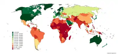 Валово́й вну́тренний проду́кт (по парите́ту покупа́тельной спосо́бности) на ду́шу населе́ния — макроэкономический показатель, отражающий рыночную стоимость всех конечных товаров и услуг (с учётом паритета покупательной способности), произведённых в стране за определённый год, в среднем одним человеком (на душу населения). ВВП (по ППС) на душу населения является характеристикой, определяющей уровень экономического развития страны. Все показатели для сопоставимости выражаются в единой валюте — долларе США. Пересчёты из национальных валют, как это принято при международных экономических сопоставлениях, выполняются не по рыночным обменным курсам валют, а по паритету покупательной способности.