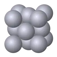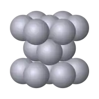 cF4 | Fm3m (225) | Кубическая гранецентрированная структура Браве (трёхслойная плотнейшая упаковка) | 12 | Cu, Al, Ni, Pd, Ag, Pt, Au, Pb |