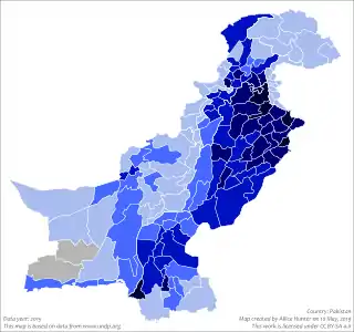 Составной список, созданный для примерной оценки уровня жизни населения в регионах Пакистана по таким критериям, как доход населения, продолжительность жизни и образование. Статистика начала вестись с 2005 года.[1] По результатам исследования в стране наблюдается очень высокое неравенство по уровню жизни в разных регионах. Если в столице Пакистана, Исламабаде, ИЧР составляет 0.892 (на уровне стран Восточной и Южной Европы), то наименее развитый регион Тхарпаркар с индексом 0.314 ненамного благополучнее, чем самые бедные страны Африки: Нигер и Конго.