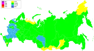 | Коми-Пермяцкий автономный округ | 2.06 | 1.95 | 1.81 | 1.85 | 1.87 | 1.83 | 1.93 | 1.90 | 1.87 | 1.97 | 1.88 | 1.76 | — | 1.71 | 1.86 | 2.12 | 2.16 |