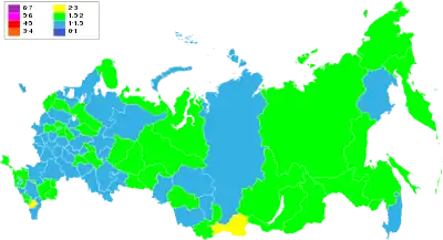 | Дальневосточный федеральный округ | 1.78 | ↗1.81 | ↗1.87 | ↗1.89 | ↘1.86 | ↘1.73 | ↗1.74 | ↘1.67 | ↗1.70 |