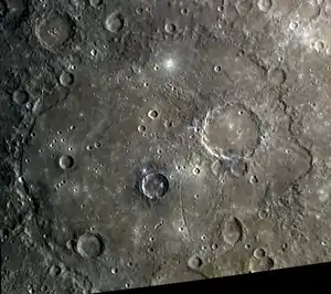 - David Shiga. Bizarre spider scar found on Mercury's surface (англ.). NewScientist (30 января 2008). Дата обращения: 1 февраля 2013. Архивировано 13 февраля 2013 года.