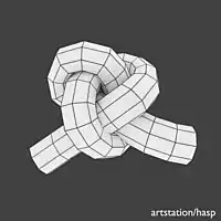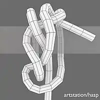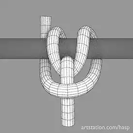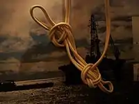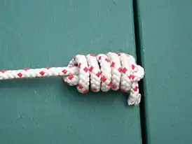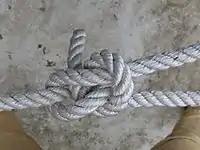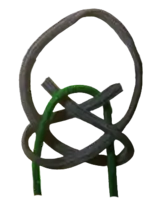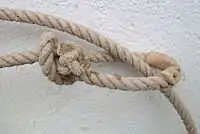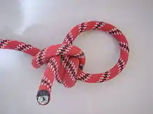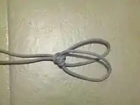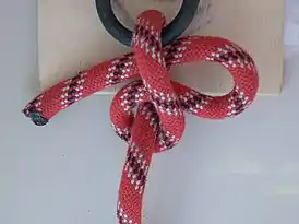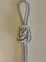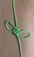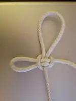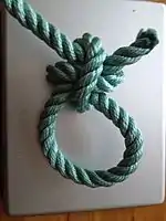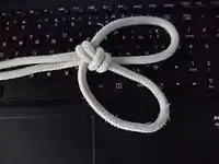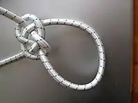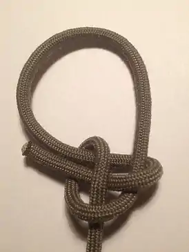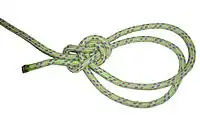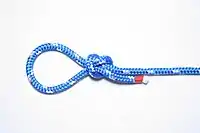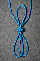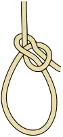 Кноп, меньше ослабляет трос, чем фламандская петля, но уступает в простоте завязывания, расходу верёвки и размерам[28].