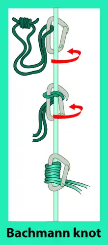 Альпинисткий У. для страховки, вертикальной транспортировки. Легко вяжется и надёжен при любом состоянии троса.