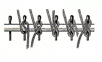 - Round turn and two half hitches,Round turn and a half hitch,Two round turns and two half hitches