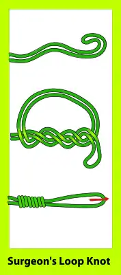 Creeler's knot,openhand knot - Surgeon's loop,Gut Knot