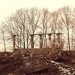- Колхозная, улица; до 1955 года — улица Набережная села Усть-Чепца.[19]. В названии улицы нашло отражение нахождение в селе Усть-Чепца колхозной центральной усадьбы. Сейчас это небольшая улочка с остатками деревянной усадебной застройки, сменяемой новыми особняками, прижавшаяся к берегу Вятки. Нумерация домов следует с востока на запад (по течению реки, в отличие от остальных улиц города), при этом начинается с № 48, под которым числятся Всесвятская церковь и 2-этажное полукаменное здание воскресной школы (постройки 1904 года).