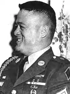 Максимо Ябес KIA | Армия | Первый сержант (E-8) | Близ района Đông Hòa | 26 февраля 1967 | Прикрыл своим телом товарищей в бункере, перенёс двоих раненых в безопасное место, где они могли получить медицинскую помощь и перед гибелью уничтожил вражеское пулемётное гнездо. |