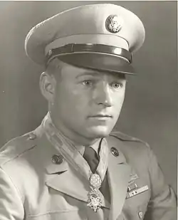 James I. Poynter KIA | Корпус морской пехоты США | Сержант | Sudong, Корея | 4 ноября 1950 | Рота А 1-й батальон 7-го полка 1-й усиленной дивизии морской пехоты. | Пожертвовал жизнью уничтожив несколько солдат противника гранатами, чтобы спасти группу товарищей-морских пехотинцев. |