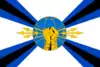 Полотнище голубого цвета. В центре — эмблема Космических войск (ныне Войск воздушно-космической обороны). |
