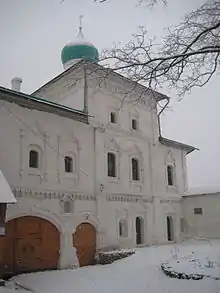 1496 | улица Герцена, 7 | 57°49′22″ с. ш. 28°20′20″ в. д. | Реставрации: 1948—1953 годы, арх. Ю. П. Спегальский; 1990—2009 годы, ПИ «Спецпроектреставрация», воссоздан южный придел.[18] | Действующая (с ноября 2007 года) |
