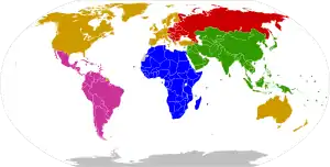 | Год | Латинская Америка | Западная Европа | Восточная Европа и Азия | Ближний Восток | Содружество наций | |