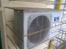 Сплит-система (англ. split — «разделять») — кондиционер, система кондиционирования воздуха (СКВ), состоящая из двух блоков: внешнего (компрессорно-конденсаторного агрегата) и внутреннего (испарительного). Внешний блок монтируется вне кондиционируемого помещения. Внутренний блок монтируется внутри кондиционируемого помещения или в вентиляционную систему здания. Друг с другом блоки соединяются медными теплоизолированными трубами[1].