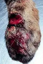 Споротрихоз (др. названия: болезнь Берманна — Гужеро, споротрихозный лишай) — хроническое заболевание человека и животных из группы глубоких микозов, вызываемое микроскопическим грибом рода Sporothrix — Sporothrix schenkii (syn: Sporotrichum beurmanni, Sporotrichum jenselmei)[3][4].