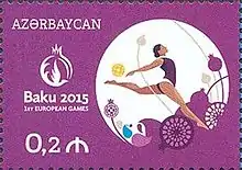 Спортивная гимнастика на почтовой марке Азербайджана, посвящённой Европейским играм 2015