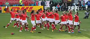 Также в стране имеется национальная сборная, трижды принимавшая участие в чемпионатах мира по этому спорту|, а также участвующая в Тихоокеанском кубке. На данный момент сборная Тонги занимает 4 место в мировом рейтинге.