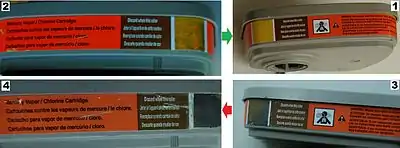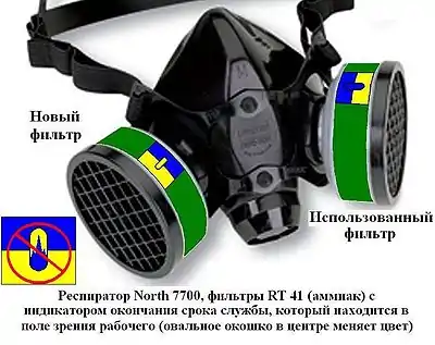 По мере насыщения сорбента, химического поглотителя (или осушителя — при использовании катализаторов) концентрация вредных газов в очищенном воздухе постепенно возрастает. Если рабочий чувствует характерный запах, привкус, раздражение органов дыхания и т. д. (вплоть до головокружения, головной боли, и других возможных ухудшений самочувствия, в том числе потери сознания), то такие признаки (называемые в США «предупреждающими свойствами»[19]) указывают на необходимость покинуть участок с загрязнённой атмосферой и замену фильтра на новый. Кроме того, эти признаки могут указывать на неплотное прилегание маски к лицу. Исторически, такой способ замены является самым старым.