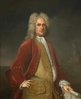 ![]() Портрет Чарльза Бриджеса 1736 года. На заднем плане изображён замок Блиндхайм, около которого Спотсвуд был ранен в 1704 году. | |
