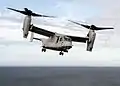 Винтовые движители конвертоплана V-22 образуют зону повышенного давления и создают видимые завихрения