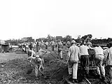 Сталинский Советский Союз и нацистская Германия использовали лагеря для интернированных под руководством государственных органов: НКВД в Советском Союзе и СС в нацистской Германии.[137] Они также применяли насилие против меньшинств на почве ксенофобии, причем ксенофобское насилие нацистов было откровенным, но рационализировалось как насилие против «асоциальных» элементов. В отличие от этого, ксенофобское насилие сталинистов было замаскировано под борьбу с «антисоветскими», «контрреволюционными» и «социально вредными» элементами, под которыми часто подразумевались национальные диаспоры.[139] В сталинском Советском Союзе были созданы «особые поселения», куда высылались «социально вредные» или «социально опасные», в том числе бывшие заключенные, преступники, бродяги, бесправные и «деклассированные элементы».[140] Эти «спецпоселения» находились в основном в Сибири, на крайнем севере, на Урале и других негостеприимных территориях.[141] В июле 1933 года Советский Союз произвел массовые аресты 5000 цыган, фактически по признаку их этнической принадлежности, которые были депортированы в том же месяце в «специальные поселения» в Западной Сибири.[141] В 1935 году Советский Союз арестовал 160 тысяч бездомных и несовершеннолетних правонарушителей и отправил многих из них в исправительно-трудовые колонии НКВД, где они выполняли принудительные работы.[142]