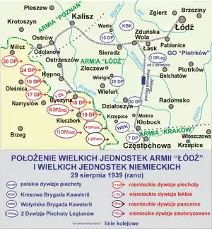 ![]() Дислокация польских и немецких войск перед сражением | |||