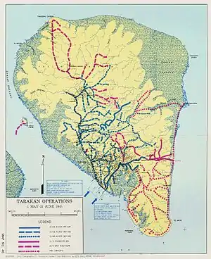 Австралийцы предпочли не ввязываться в кровопролитные бои в сложных природных условиях острова, а использовать своё подавляющее превосходство в артиллерии и авиации, постепенно продвигаясь вперёд. 7 мая сапёрный батальон и нидерландская рота вышли к окраинам города Таракан, однако наткнулись там на сильное японское сопротивление. 14 мая, после недели интенсивных атак с воздуха, японцы оставили свои позиции, и 16 мая сапёрный батальон вышел к восточному побережью острова; нидерландцы тем временем осуществили «зачистку» южной части острова.
