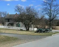![]() Персиковый сад, амбар фермы Шерфи и памятник батарее Баклина (2015) | |||