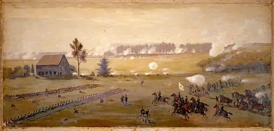 Бригада Уилларда прорвалась за низину и прошла ещё 175 метров, где она оказалась опасно близко к батареям южан. Уиллард приказал отойти назад за Плам-Ран, и как только бригада отошла за низину, полковник Уиллард был убит осколком снаряда. Полковник Элиаким Шеррилл принял командование бригадой[58].
