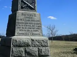 | Батарея Эймса в Персиковом саду | «Наполеон» батареи Мэнли (батальон Кейбелла) | 12-фунтовая гаубица батареи Карлтона (дивизия Мак-Лоуза) | 24-фунтовая гаубица батареи Мэдисона (артрезерв I корпуса) |