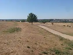 Памятник-обелиск, открытый 8 сентября 1884 года, в 30-ю годовщину Альминского сражения. Авторы проекта полковник К. Е. Геммельман и капитан Ползиков.