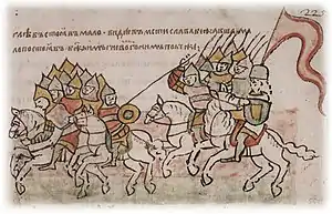 ![]() Бегство войск Глеба Рязанского под натиском полков Всеволода III | |||