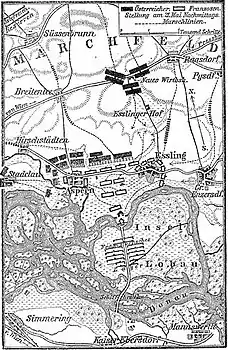 В это время войска Карла в жестокой битве выбили французов с Асперна, но Эсслинг, обороной которого руководил Жан Буде, им захватить пока не удавалось (позднее за проявленную стойкость генерал Буде получит от Наполеона имение и графский титул)[2].