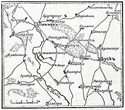 Не зная общего положения дела, Загряжский решил идти на выручку, надеясь внезапно появиться в тылу мятежников. Оставив в Буско-Здруе обоз под прикрытием 1 роты, с другой и эскадроном он двинулся к опушке леса.