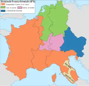 - Здесь император Карл II издал хартию, в которой объявлял себя единственным законным наследником умершего короля Людовика II Немецкого.