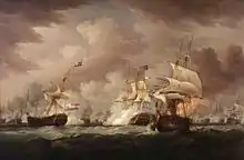 ![]() Кампердаун. HMS Venerable против Vrijheid; холст, масло. Томас Уайткомб, 1798 | |||