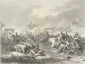 ![]() Сражение при Монтро. Гравюра по картине Ланглуа. | |||