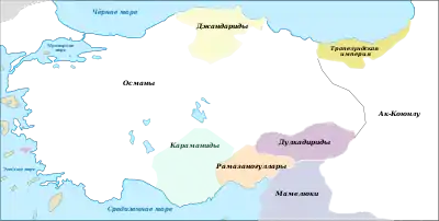Один из Караманидов, Касым, восстал и напал на Анкару. В ответ, в 1471 и 1472 годах, Мехмед отправил в Караман две экспедиции, подчинив не только север страны, но и горные районы до побережья Средиземного моря[4]. Летом 1472 года войска Ак-Коюнлу напали на недавно захваченный османской армией Караман. Во главе армии в 20 000 человек, помимо Мирзы Юсуфчи бен Джихангир (племянника и военачальника Узуна-Хасана), стояли Пир Ахмет Караманид (возможно, с ним был и Касым-бей Караманид) и Кизил Ахмед Исфендияроглу[1]. Узун Хасан собирался восстановить Пир Ахмеда на троне Карамана, а Кизил Ахмеда в Синопе. Главным событием кампании были захват и разорение Токата, через который шла торговля шёлком и который приносил немалый доход в казну султана[4]. По словам Нешри, «Они поступали хуже неверных, так что эти жестокие люди причинили Токату урон в пять раз больше, чем Тимур Сивасу»[5]. Сын Мехмеда, шехзаде Мустафа, отразил вторжение войск Ак-Коюнлу и пленил Юсуфчу[6] (Абу Бакр Тихрани писал, что Юсуфча погиб[7]), но тот успел захватить город Кайсери[8].