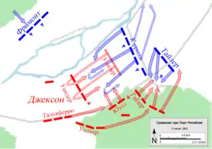 Рано утром 8 июня началась сражение при Кросс-Кейс. Пока шла перестрелка у Кросс-Кейс, федеральная кавалерия Баярда совершила рейд на Порт-Репаблик и едва не захватила в плен самого Джексона с его обозами. Джексон направил против прорвавшейся кавалерии 37-й вирджинский полк, при появлении которого северяне отошли. Баярд отвёл своих людей на две мили от города и соединился с авангардом Шилдса — бригадой Эрастуса Тайлера[7].