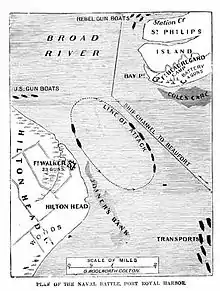 Параллельно со строительством фортов власти штата Джорджия формировали некое подобие военного флота, оборудовав пушками несколько буксиров и портовых судов. Эти корабли не были способны противостоять флоту США в открытом море, однако, благодаря небольшой осадке, свободно перемещались по мелководью у берегов Южной Каролины и Джорджии. Командовал этими кораблями старший флаг-офицер капитан Джосайя Тэттнэлл. Когда эти корабли были зачислены в военно-морской флот Конфедеративных Штатов, Тэттнэлл возглавил береговую оборону штатов Южная Каролина и Джорджия. В окрестностях пролива Порт-Ройал он держал четыре канонерских лодки: колёсный пароход Savannah, вооружённый одной 32-фунтовой пушкой, и три бывших паровых буксира (Resolute, Sampson [1 × 32-фунтовая гладкоствольная, 1 × 12-фунтовая пушка] и Lady Davis [1 × 24-фунтовая, 1 × 12-фунтовая нарезная пушка])[22].