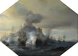 - Авангард из 6 линейных кораблей, командир авангарда — вице-адмирал де Прельи на 64-пушечном «Сен-Мишель».