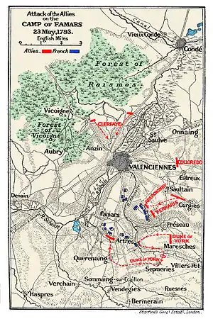 Бесполезность попыток разблокировать Конде заставила французов продолжать обороняться в лагере Фамар. Герцог Кобургский решил отнять у них это позицию, чтобы организовать, как он и планировал, осаду Валансьена, но он отложил свое наступление до 23 мая, до получения подкрепления в 12 000 ганноверцев.