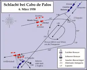 Бой у мыса Палос в ночь с 5 на 6 марта 1938 года — одно из важнейших морских сражений гражданской войны в Испании. Бой представлял собой быстротечное (несколько минут) столкновение эскадр противоборствующих сторон, в котором основной удар нанесли республиканские эсминцы с помощью торпед. В результате флагманский корабль франкистской эскадры, тяжёлый крейсер «Балеарес» типа «Канариас», был потоплен, другой крейсер серьёзно повреждён. Это стало самой крупной победой республиканского флота за всю войну[3].