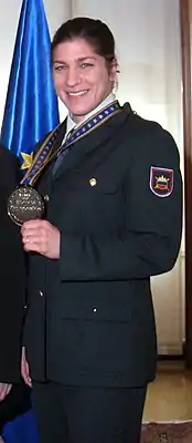 Выступала в весовой категории до 70 кг. Рост — 174 см. Выступала в 1999—2012 годах за клуб вооружённых сил Словении.